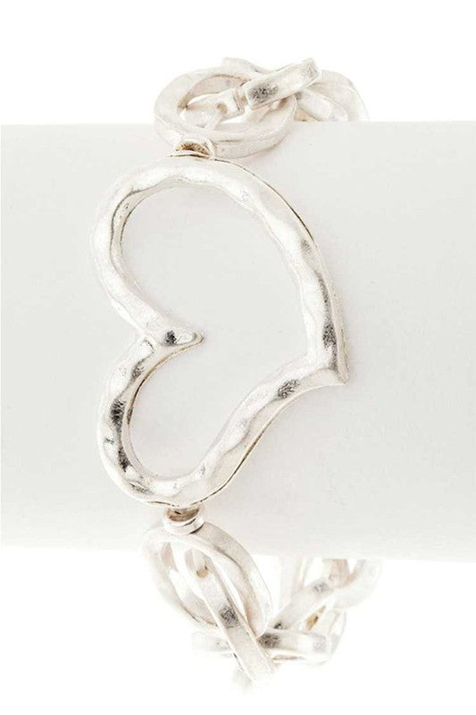 Hammered Heart Charm Stretch Bracelet (More Colors)