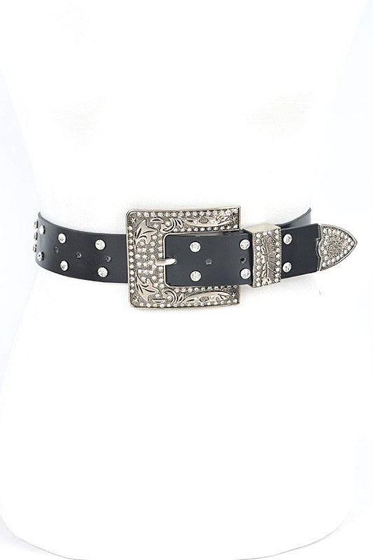 Plus Size Engraved Buckle Crystal Metallic Belt (More Colors)