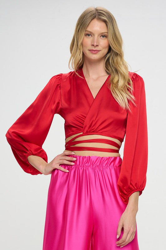 Silky Satin Wrap Crop Top with Tie