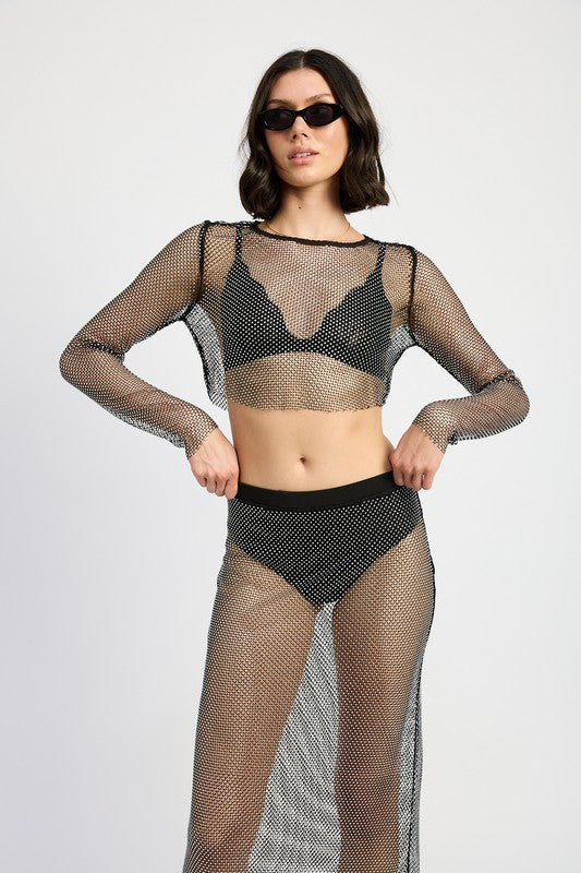 Vendor:Emory ParkRegular price $43.00 USDRegular priceUnit price / perSale price $43.00 USDRhinestones Mesh Cropped Top