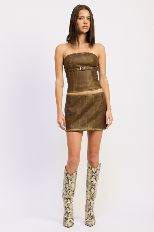 Leather Tube Top With Belt Detail